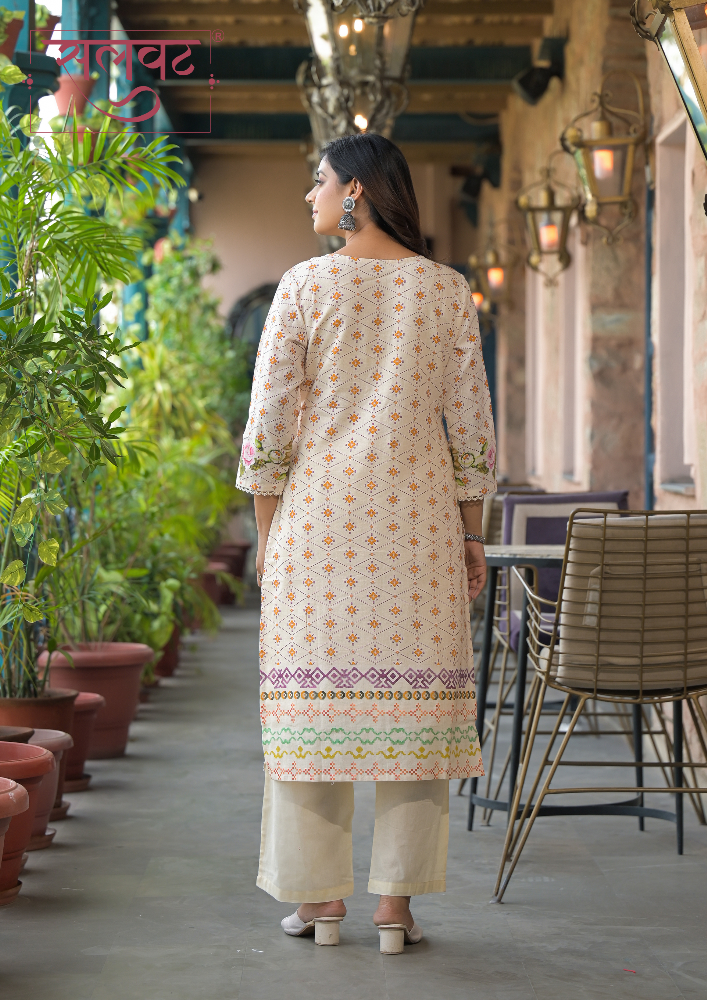 Detailed beads-sequins handwork on neck, lace on sleeves & kurta hemline with digital print dupatta.