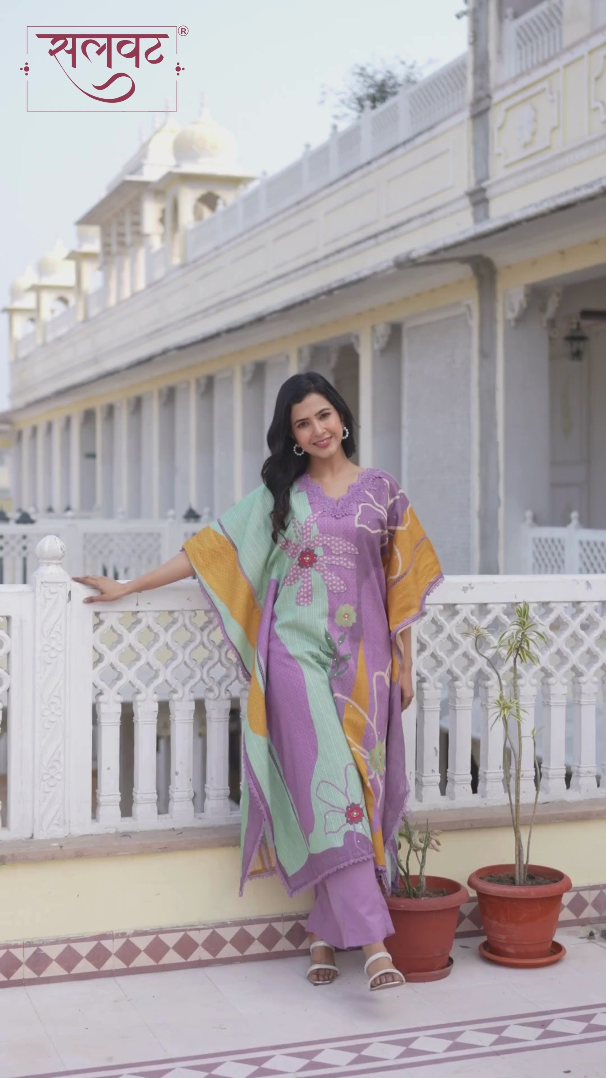 Lilac Abstract Printed Sequins Embellished Kaftan Set