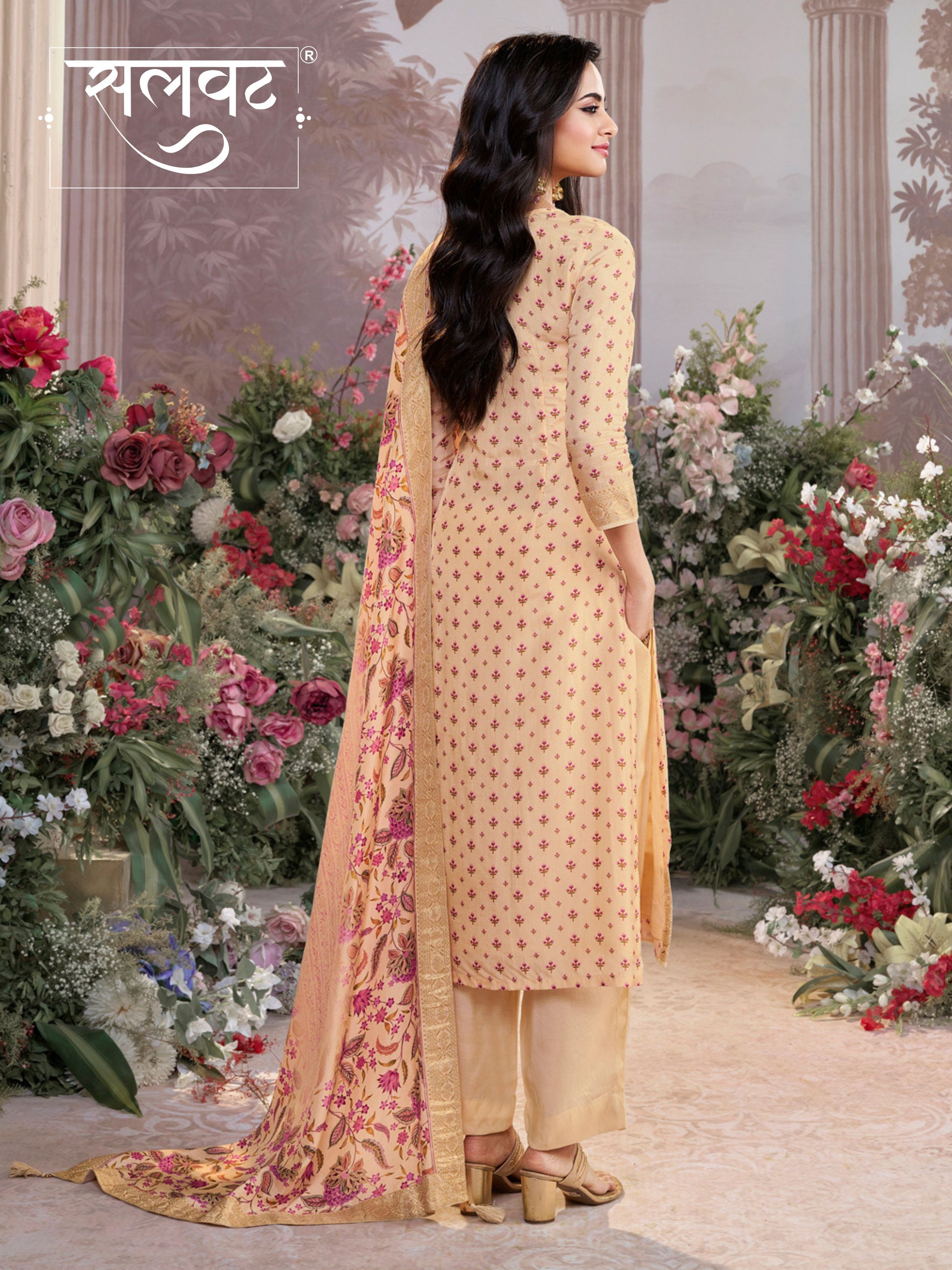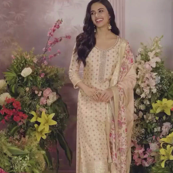 Off-White Russian Silk Kurta Set with Digital Print Work Paired with Russian Silk Digital Printed Duppatta