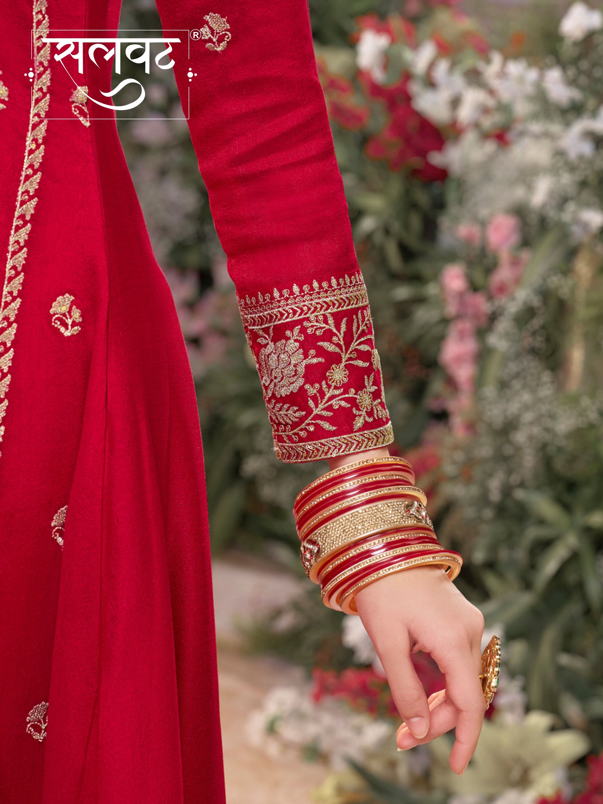 Red Vichitra Silk Kurta Suit Set with Embroidered Work Paired with Vichitra Silk Dupatta with Embroidered Work