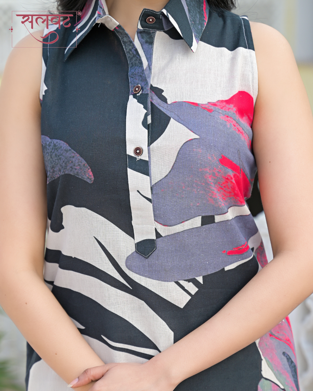 Autum inspired Coloured abstract Style Digital printed And Pants with pockets